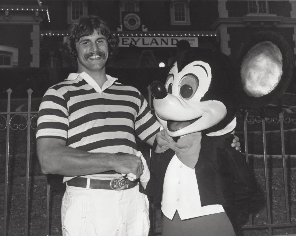 Colorado running back Jim Kelleher with Mickey Mouse at Disneyland during the 1977 Mr. Irrelevant Week.